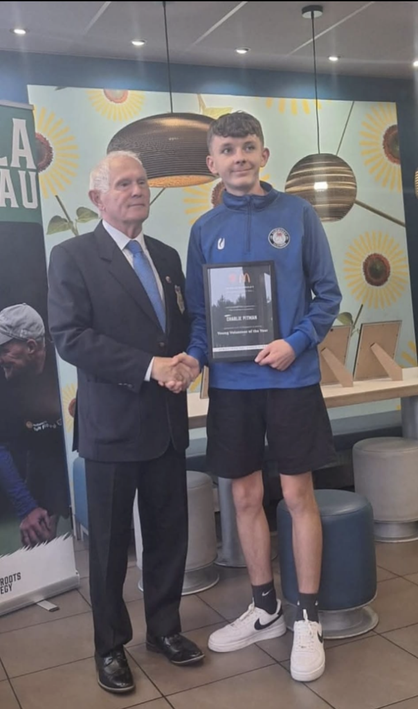 Charlie started volunteering and helping out at the club and did everything from coaching the children to cutting the grass on the sit on lawnmower. Well done Charlie!