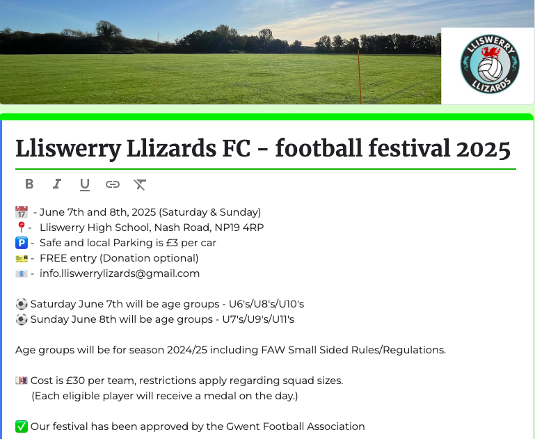 For more information please email the club – info.lliswerrylizards@gmail.com